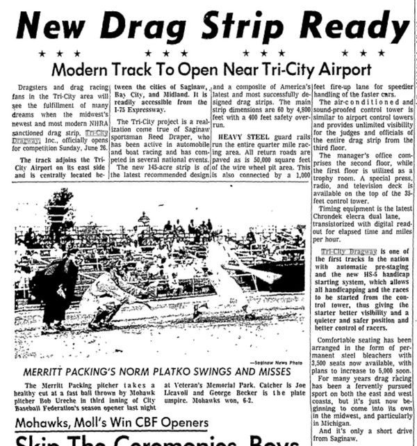 In the early 1960s, Reed Draper, the owner of the Saginaw GM dealership and a respected community leader, visited a drag strip in the South and was instantly captivated by the thrill of the racing. Inspired, Draper was wanted to bring a drag strip to his own community.